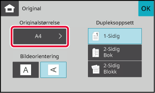 Når du har trykket på [Original]-tasten, trykker du på [2-Sidig Bok]- eller [2-Sidig Blokk]-tasten.