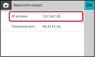 Fra innstillingsmodusen på maskinen, skriv ut IP-adressen