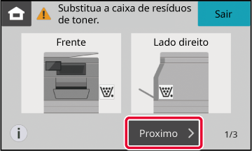 para a substituição da caixa de resíduos de toner. Seguir as instruções.