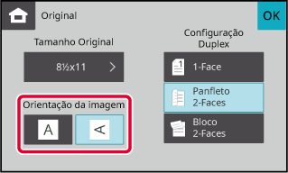 Toque primeiro na tecla [Original] e depois na tecla [Panfleto 2-Faces] ou na tecla [Bloco 2-Faces].