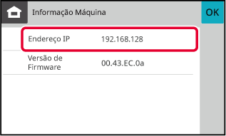 Iniciar o browser Web de um PC na mesma rede da máquina, e introduzir o endereço IP da máquina.