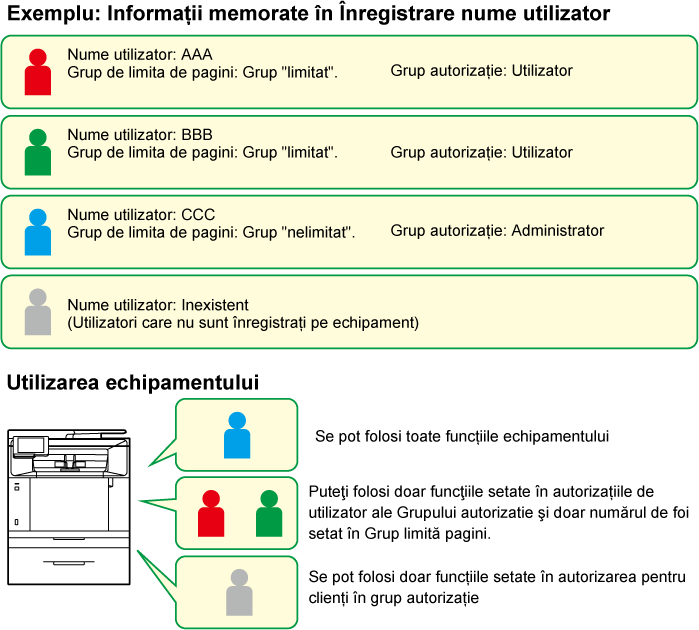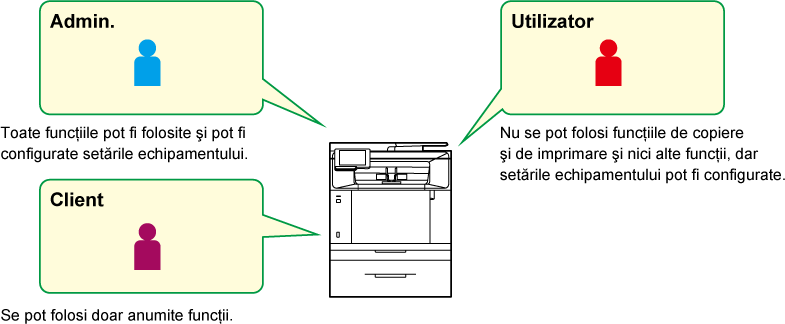 funcțiile și setările pe care le pot folosi utilizatorii care aparțin