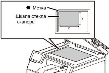 Поместите оригинал лицевой стороной вниз и совместите верхний левый угол оригинала с дальним левым углом (с концом стрелки