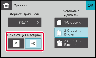 Коснитесь кнопки [Оригинал], затем кнопки [2-Сторонн. Буклет] или [2-Сторонн. Блокнот].