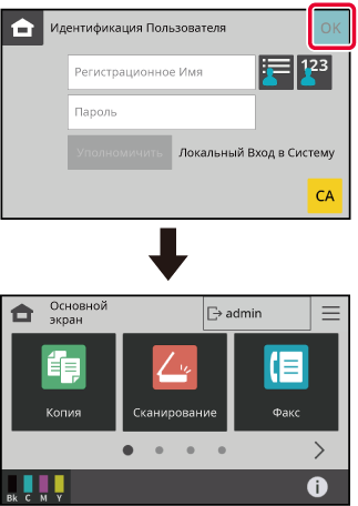 для эксплуатации аппарата каждому пользователю нужно войти в систему.