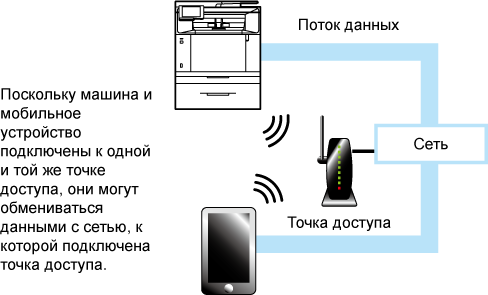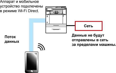 с помощью Wi-Fi непосредственно. В этом режиме недоступен обмен