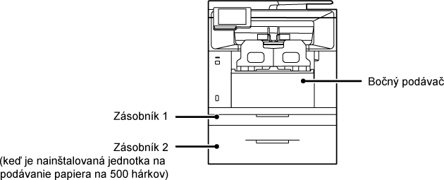 | Zásobník 1 | Zásobník 2*1 | Bočný podávač | |