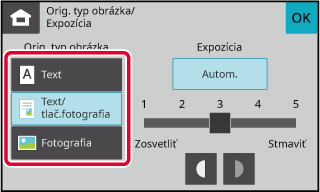 Klepnite na tlačidlo [Typ obrazu originálu/Expozícia].
