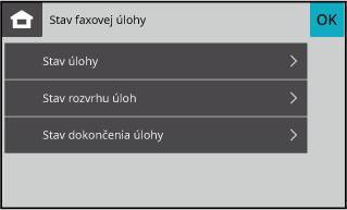 Klepnite na tlačidlo [Stav faxových úloh] a potom klepnite na tlačidlo [Stav úloh]
