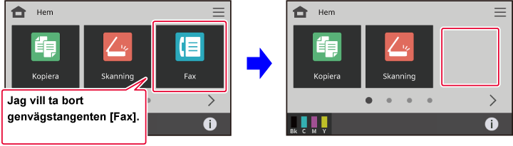 Inställningarna lagras i maskinen och aktiveras.Du kan ta bort onödiga snabbknappar.