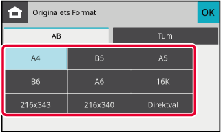 KOPIERINGSLÄGETryck på lämplig knapp för originalformat.