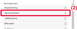 - Välj [Skrivarfunktioner] i ”Skrivaralternativ” och sedan [Papperskälla].