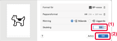 kan även välja [Uppe till vänster] eller [Mitt] som baspunkt på papperet.