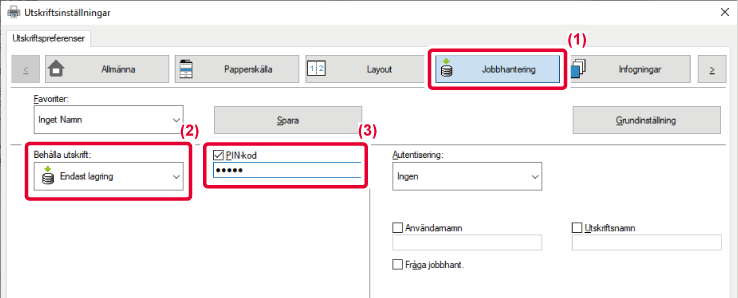 du lagra ett utskriftsjobb i maskinens minne och göra det tillgängligt