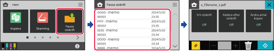 utskrift] tar bort data efter utskrift. Tryck på [Ändra antal kopior] för