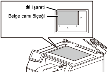 Orijinali yüzü aşağı bakacak şekilde yerleştirin ve orijinalin sol üst köşesini belge camının sol arkasıyla (