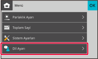 Makine yeniden başlatıldıktan sonra, dil varsayılan görüntüleme