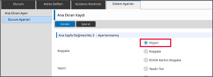 [Hiçbiri] seçin ve [Gönder] düğmesini tıklatın.