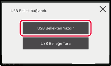 İşlem seçmenizi isteyen ekran çıktığında [USB Bellek üzerinden bas] seçeneğine dokunun.