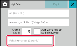 [Faks Numarası] öğesine dokunun, faks numarasını girin