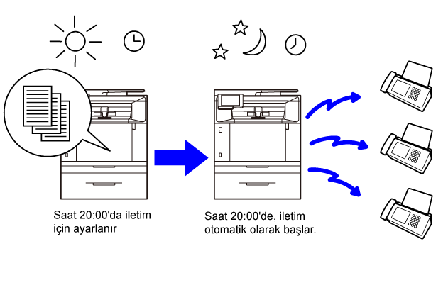 Faks modundayken, hedef numarayı girin.[Diğerleri] tuşuna ve ardından [Zamanlayici] tuşuna dokunun.