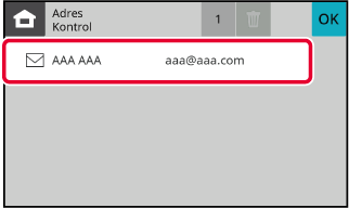 Kolay tarama ekranında veya E-posta modunda adres defterini
