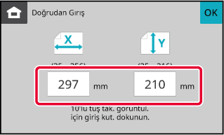 Ayarları" bölümünde belirtilen orijinal boyutu dışındaki bir boyutta