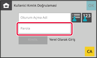 Ayar modunda kullanıcı adı kaydı yapılmadıysa, sadece LDAP doğrulama kullanan bir kullanıcı [Oturum Açma Adi] metin kutusuna dokunmalı ve programlanabilir klavyeyi kullanarak oturum açma adını girmelidir.