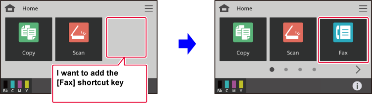 The settings are saved in the machine and applied.You can delete unneeded shortcut keys.