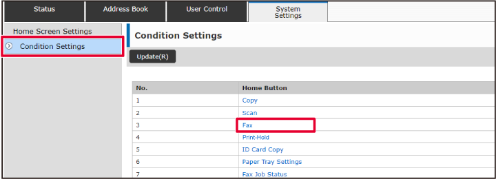 In the factory default state, you must enter your user password after entering the IP address.On the Web page, click the [System Settings] tab → [Home Screen Settings].