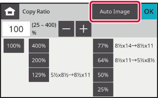 The reduction or enlargement ratio is automatically selected based on the original size and the selected paper size.