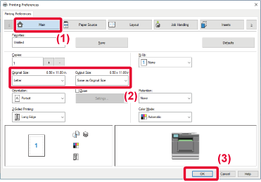 tab and "Output Size" is set to [Same as Original Size], "Paper Type" is automatically