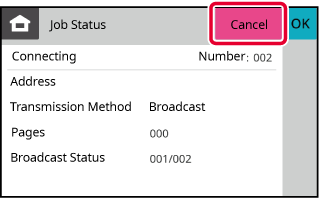 Tap the [Cancel] key when a screen appears confirming that the job is canceled.