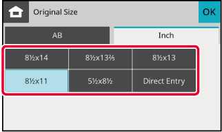 On the base screen, check that the specified size is displayed on the [Original] key.Optimum scanning is ensured by selecting