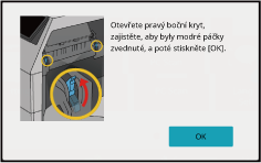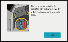 Při tisku s vloženými obálkami se zobrazí výzva k obsluze uvolňovací páčky fixačního