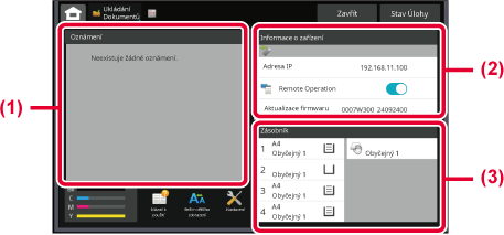 Zobrazí se formát, typ a zbývající množství papíru založeného v zařízení. Klepnutím