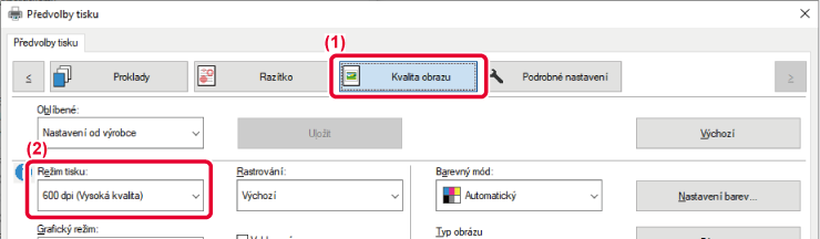 | 1200 dpi | Tento režim zvolte pro tisk barevných fotografií s vyšší rozlišením a pro jasný tisk slabých čar. |