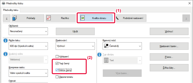 Tuto možnost zvolte, pokud chcete tisknout datovou oblast černé barvy pouze černým tonerem. |