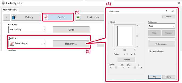 vyznačena razítkem na tisková data. U obrazu je možno nastavit jeho velikost, umístění