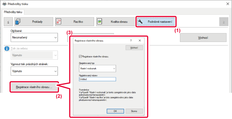 Tato funkce registrujte obrazy použité jako vlastní obrazy z ovladače tiskárny do