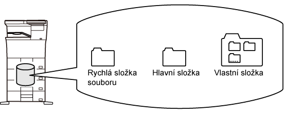 Již vytvořenou vlastní složku lze vybrat jako "Moje složka" nebo lze vytvořit novou složku "Moje složka". Je-li nakonfigurována "Moje složka" a používáte-li ověření uživatele, bude "Moje složka" vždy zvolena jako cílové uložení pro [Soubor] a [Uložení Souboru]. |