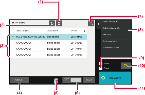 - Vyberte nebo vymažte všechny soubory. Klepnutím na tuto klávesu se zobrazení přepne