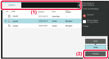 ned i køen, så jobrækkefølgen ændres. Tryk på tasten til det job, du vil slette, og