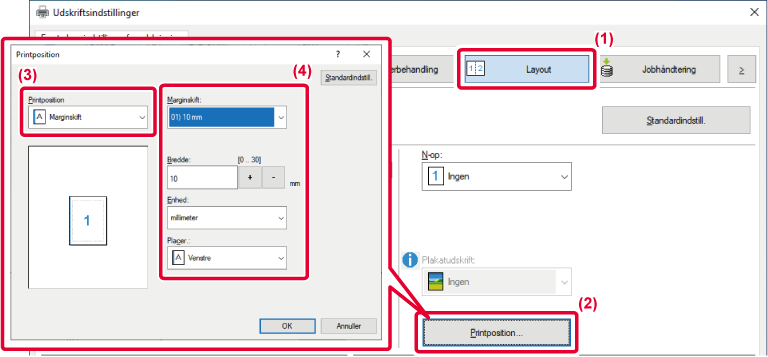 UDSKRIVNING MED MARGENSKIFTSINDSTILLING (MARGEN)