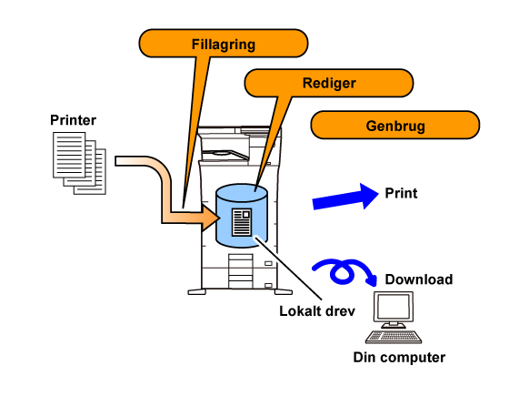Denne funktion gemmer udskriftsdata fra en computer på maskinens lokale drev eller