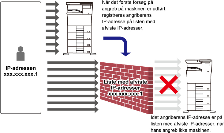 Angiv dokumentarkivering eller frigiv udskrift som funktionen for begrænsning af udskriftsjobs. Når dokumentarkivering er angivet, og [Tving opbevaring] er valgt som begrænsningshandling, gemmes jobbet i dokumentarkivering, også selv om dokumentarkivering ikke er angivet i printerdriveren. Hvis udskriftsfrigivelse er angivet, vil dokumentet også blive gemt i udskriftsfrigivelse, selvom udskriftsfrigivelse ikke er angivet i printerdriveren. |