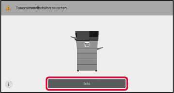 Beim Antippen der Taste werden Anweisungen zum Austauschen des Tonersammelbehälters