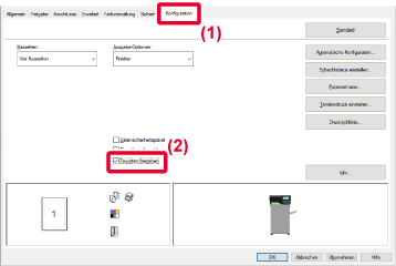 Erläuterungen der Einstellungen können Sie in der Druckertreiberhilfe finden.Wenn Sie dieses Gerät als geteilten Drucker verwenden und im Druckertreiber des geteilten