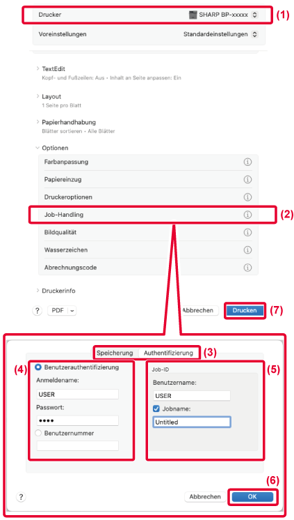 DRUCKEN BEI AKTIVIERTER BENUTZERAUTHENTIFIZIERUNGSFUNKTION