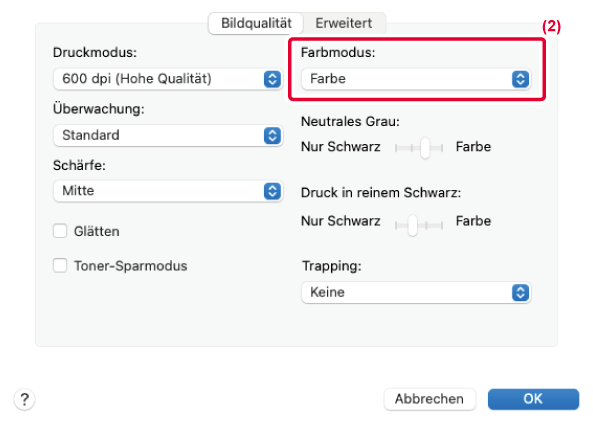 Für den "Farbmodus" sind die folgenden drei Auswahloptionen verfügbar (die für das